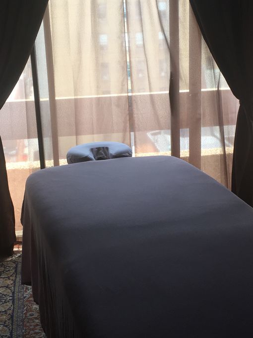 In-studio amenities: Bottled Water, Candles, Free Parking, Fully Handicapped Accessible, Hot Towels, Massage Table, Music, Private Parking, Private Restroom, Shower