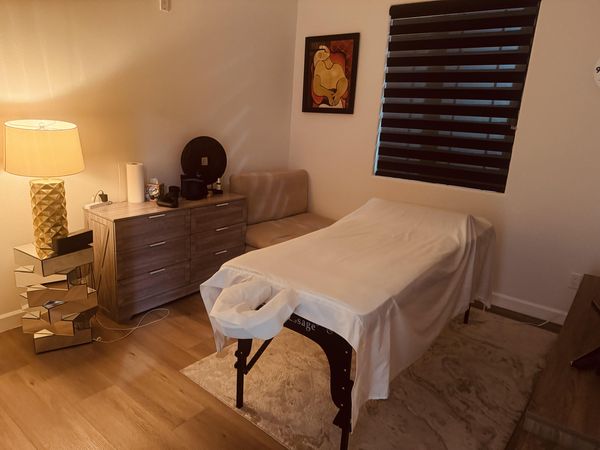 In-studio amenities: Bottled Water, Candles, Drinking Water, Free Parking, Heated Massage Table, Music, Private Parking, Private Restroom, Secured Entrance/Doorman, Shower