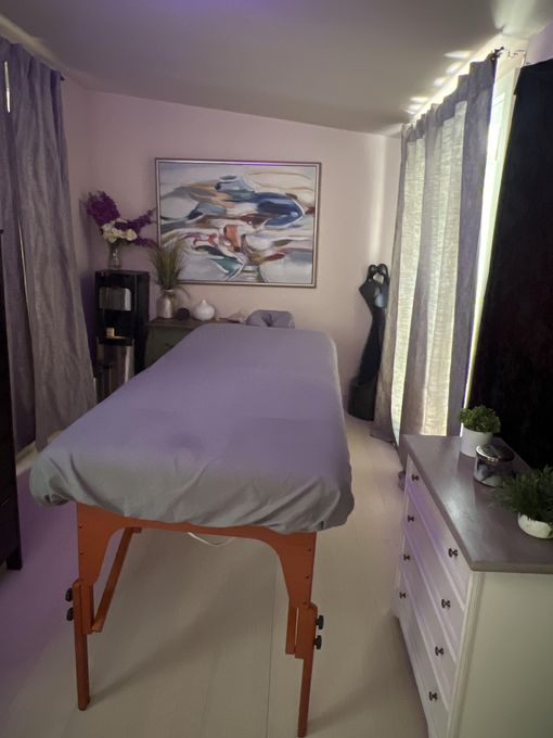 In-studio amenities: Aromatherapy Enhanced, Candles, Massage Table, Music, Private Parking, Private Restroom