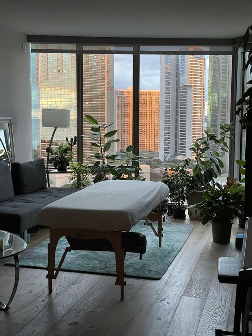 Enjoy a relaxing atmosphere with peaceful vibes and inspiring ocean views. 20+ years of experience. Showers for your convenience, and free secure indoor parking. I specialize in massage/bodywork, mental health support/meditation, and yoga/therapeutic stretching.