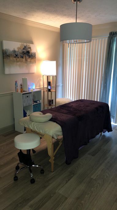In-studio amenities: Bottled Water, Free Parking, Hot Towels, Massage Table, Music, Private Restroom, Tea