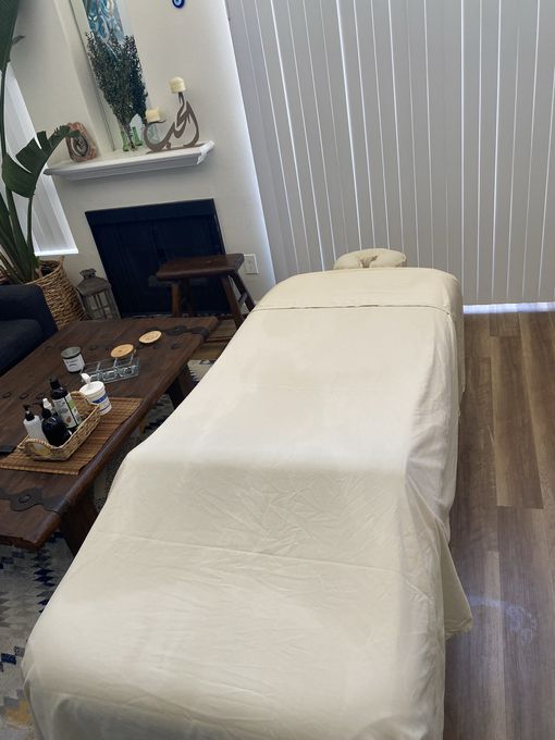 In-studio amenities: Aromatherapy Enhanced, Bottled Water, Candles, Drinking Water, Free Parking, Heated Massage Table, Music, Private Parking, Private Restroom, Shower