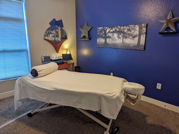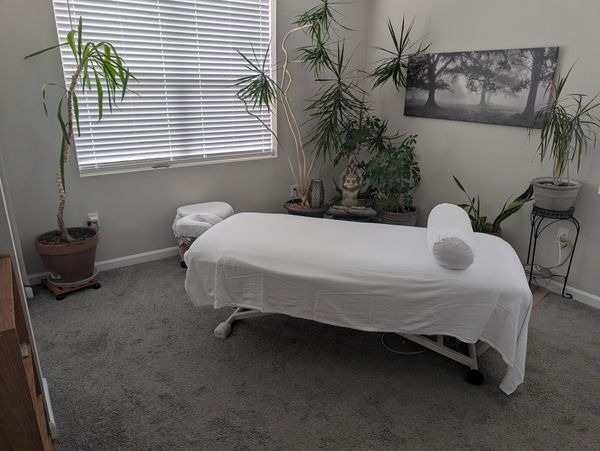 In-studio amenities: Bottled Water, Candles, Free Parking, Heated Massage Table, Music, Private Restroom, Shower