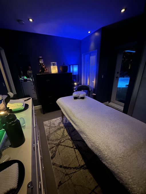 In-studio amenities: Aromatherapy Enhanced, Candles, Drinking Water, Heated Massage Table, Hot Towels, Music, Private Parking, Private Restroom, Shower, Tea
