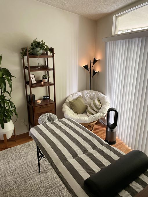 In-studio amenities: Aromatherapy Enhanced, Bottled Water, Candles, Drinking Water, Free Parking, Massage Table, Music, Private Parking, Private Restroom, Shower