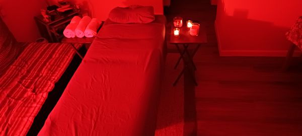 In-studio amenities: Bottled Water, Candles, Drinking Water, Free Parking, Fully Handicapped Accessible, Massage Table, Music, Private Restroom, Shower, Tea