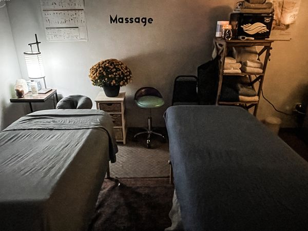 In-studio amenities: Bottled Water, Candles, Drinking Water, Free Parking, Heated Massage Table, Hot Towels, Massage Table, Music, Private Restroom, Tea