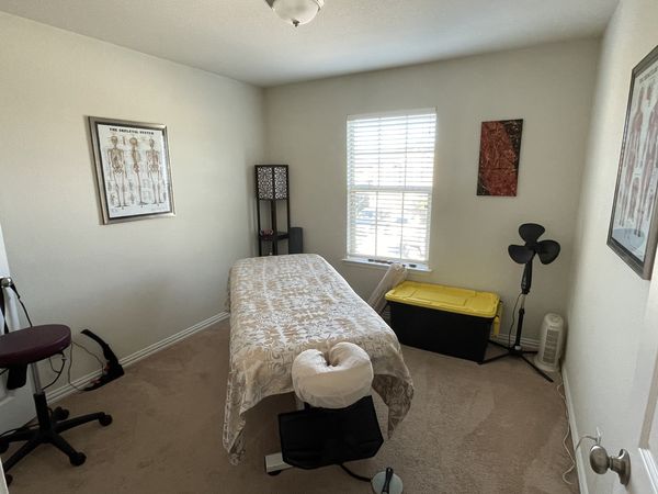 In-studio amenities: Bottled Water, Candles, Drinking Water, Free Parking, Heated Massage Table, Hot Towels, Massage Table, Music, Private Restroom