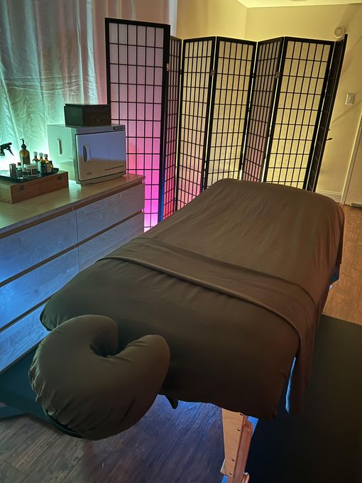 In-studio amenities: Aromatherapy Enhanced, Bottled Water, Drinking Water, Heated Massage Table, Hot Towels, Massage Table, Music, Private Restroom, Secured Entrance/Doorman, Shower