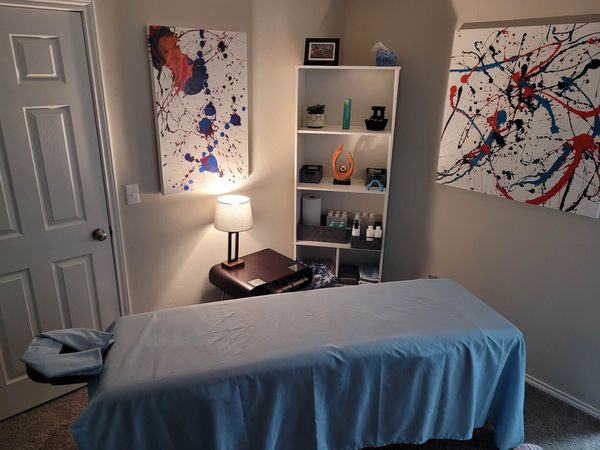 In-studio amenities: Bottled Water, Candles, Drinking Water, Free Parking, Massage Table, Music, Private Parking, Private Restroom, Shower