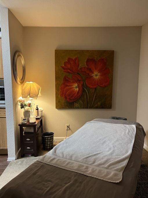 In-studio amenities: Aromatherapy Enhanced, Bottled Water, Candles, Free Parking, Heated Massage Table, Hot Towels, Massage Table, Music, Shower