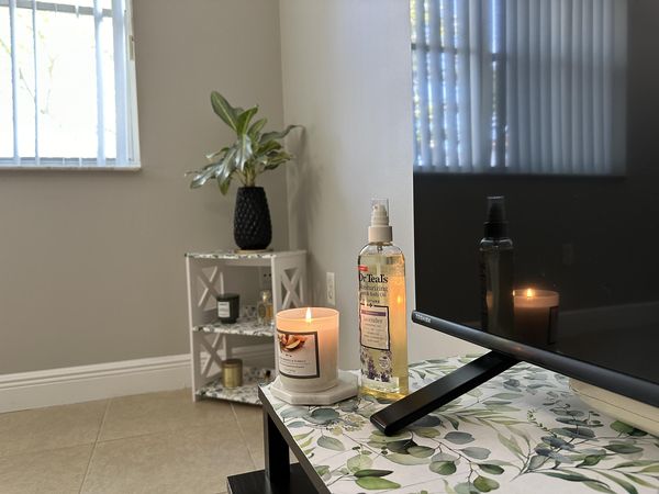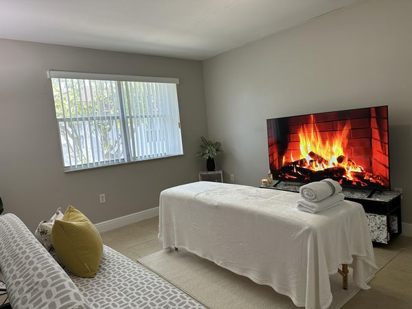 In-studio amenities: Aromatherapy Enhanced, Bottled Water, Candles, Drinking Water, Free Parking, Massage Table, Music, Private Restroom, Shower, Soft Drinks