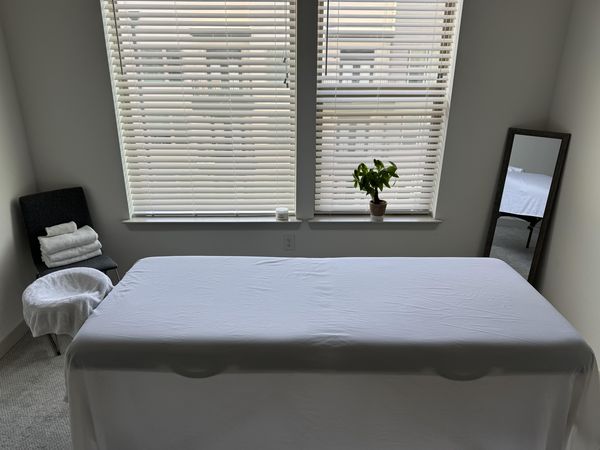 In-studio amenities: Bottled Water, Candles, Drinking Water, Free Parking, Hot Towels, Massage Table, Music, Pool, Private Restroom, Shower