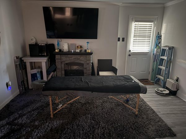 In-studio amenities: Bottled Water, Candles, Drinking Water, Heated Massage Table, Hot Towels, Massage Table, Music, Private Restroom, Shower