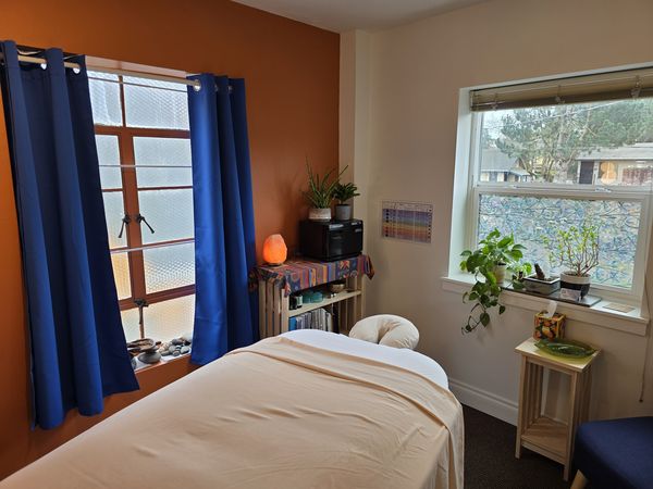 In-studio amenities: Drinking Water, Free Parking, Heated Massage Table, Hot Towels, Massage Table, Music, Private Restroom