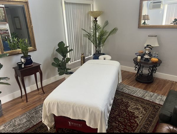 Professional massage table, fresh linen, light scented aromatherapy candles, relaxing music to enhance your massage experience. Private Shower available too. Elegant Sophisticated