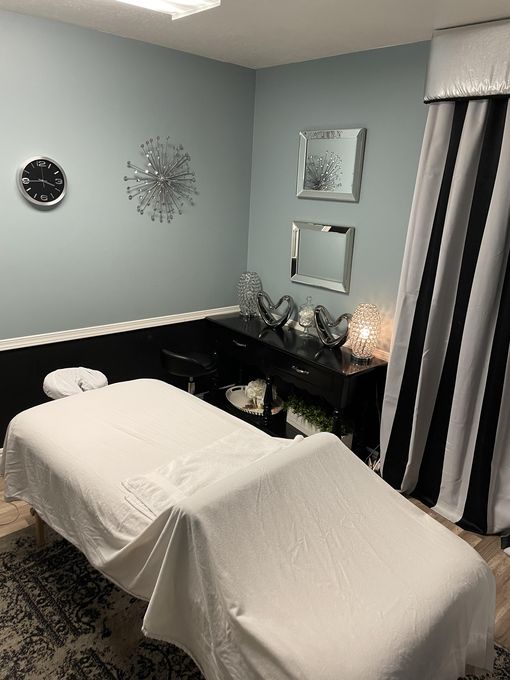 In-studio amenities: Bottled Water, Drinking Water, Free Parking, Hot Towels, Massage Table, Music, Private Parking, Private Restroom, Shower