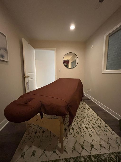 In-studio amenities: Drinking Water, Free Parking, Heated Massage Table, Massage Table, Music, Secured Entrance/Doorman
