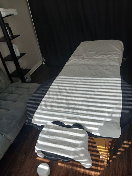 In-studio amenities: Aromatherapy Enhanced, Drinking Water, Free Parking, Massage Table, Music, Private Parking, Private Restroom, Shower
