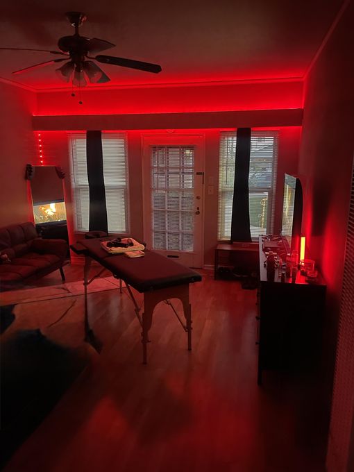 In-studio amenities: Aromatherapy Enhanced, Bottled Water, Candles, Free Parking, Hot Towels, Massage Table, Music, Private Restroom, Shower