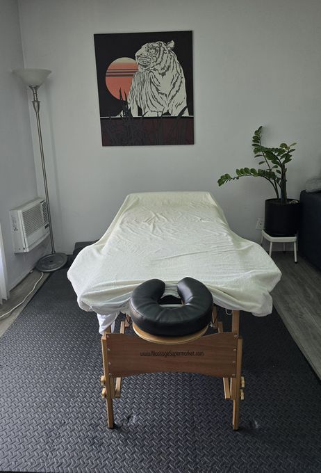In-studio amenities: Bottled Water, Free Parking, Massage Table, Music