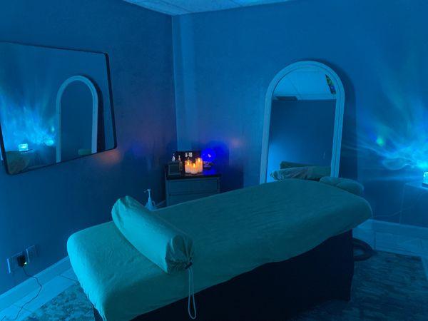 In-studio amenities: Bottled Water, Free Parking, Massage Table, Music, Private Parking, Private Restroom