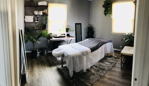 In-studio amenities: Drinking Water, Free Parking, Heated Massage Table, Massage Table, Music, Private Restroom, Shower