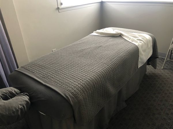 In-studio amenities: Bottled Water, Drinking Water, Free Parking, Hot Towels, Massage Table, Music, Private Restroom, Shower